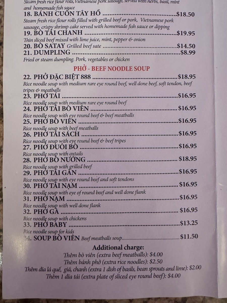 This hidden gem of a restaurant specializes in an expansive menu filled with authentic Vietnamese staples, with a spotlight on their legendary pho. The richness of their broth is truly remarkable—clear yet brimming with depth and a comforting flavor that warms your soul. Notably, the Pho Dac Biet 888 (US$15.95) features a delightful medley of medium-rare eye round beef, well-done beef soft tendon, beef tripe, and meatballs, making it a must-try for any pho enthusiast. Alternatively, if you’re looking for something a bit simpler, the Pho Tai (US$13.95) serves up the tender, juicy eye round beef paired with perfectly cooked rice noodles in that signature, savory broth.