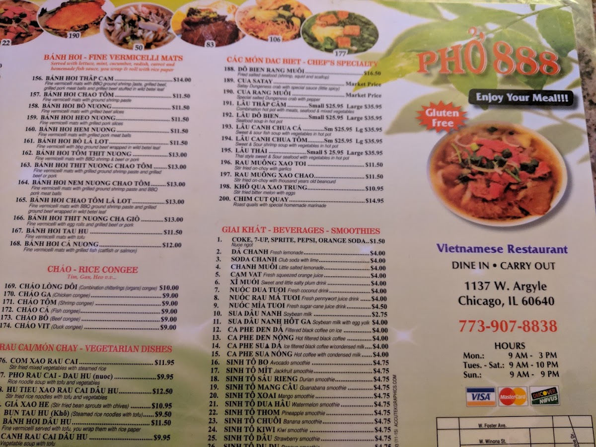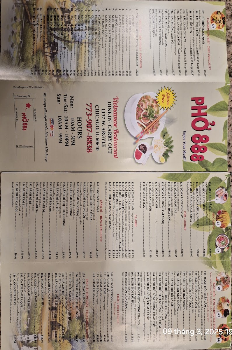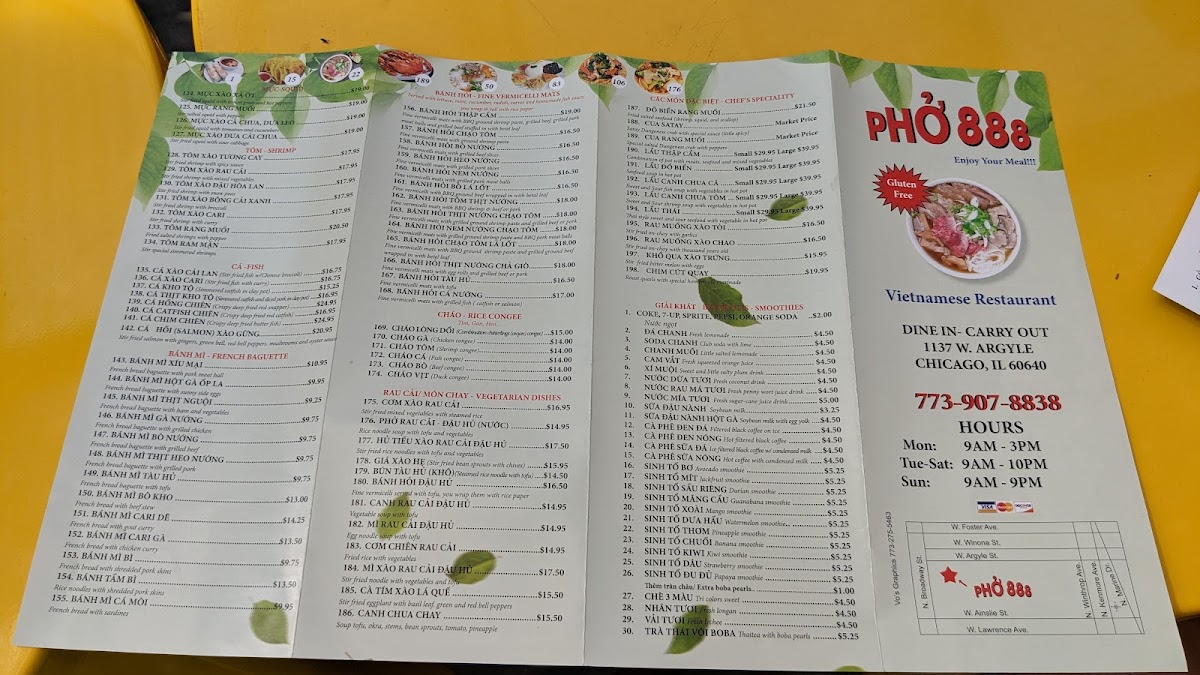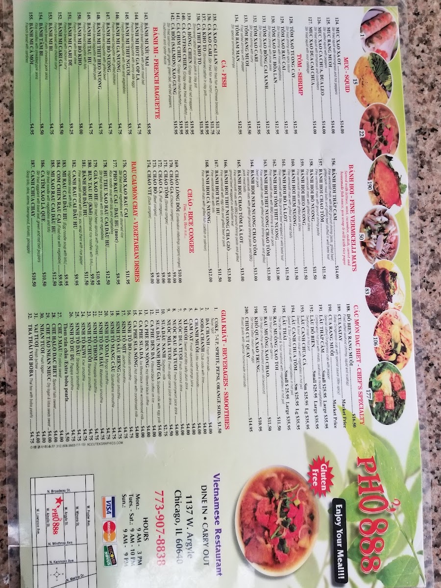 Welcome to Pho 888, a charming Vietnamese restaurant nestled in the heart of Chicago at 1137 W Argyle St. As soon as you step through the doors, you're greeted by a warm and inviting ambiance that perfectly encapsulates the essence of Vietnamese culture. With granite-topped tables and simply designed decor, Pho 888 provides a cozy and comfortable atmosphere that's perfect for casual dining.